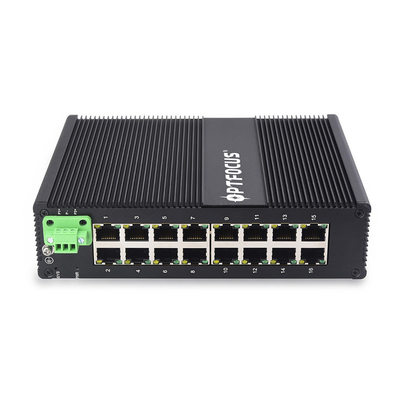 16 10/100/1000Base-T adaptive RJ45 ports, industrial grade